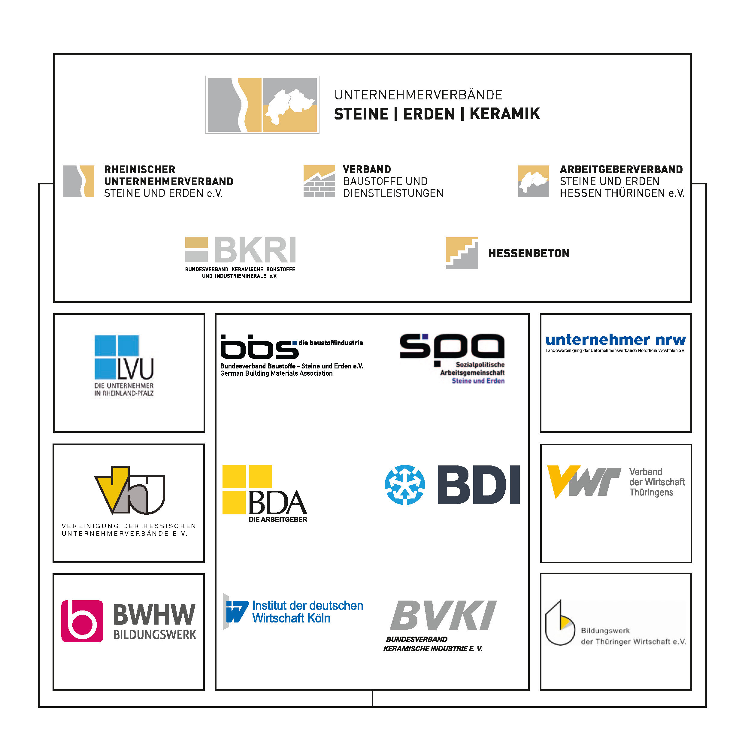 Die Dachverbände und Partnerorganisationen der Unternehmerverbände STEINE | ERDEN | KERAMIK sind: